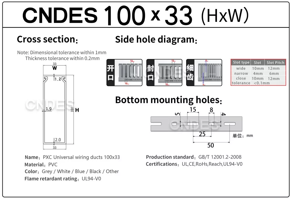 Our Quality 100×33 Servo Rack Cable Management ex UL94-V0 materia flammea PVC retardatur, obtemperans signis internationalibus qualia sunt RoHS, SPATIUM, CE, UL, ISO, superior ignis resistentia, durabilitas et longi temporis operationis salus procurans.