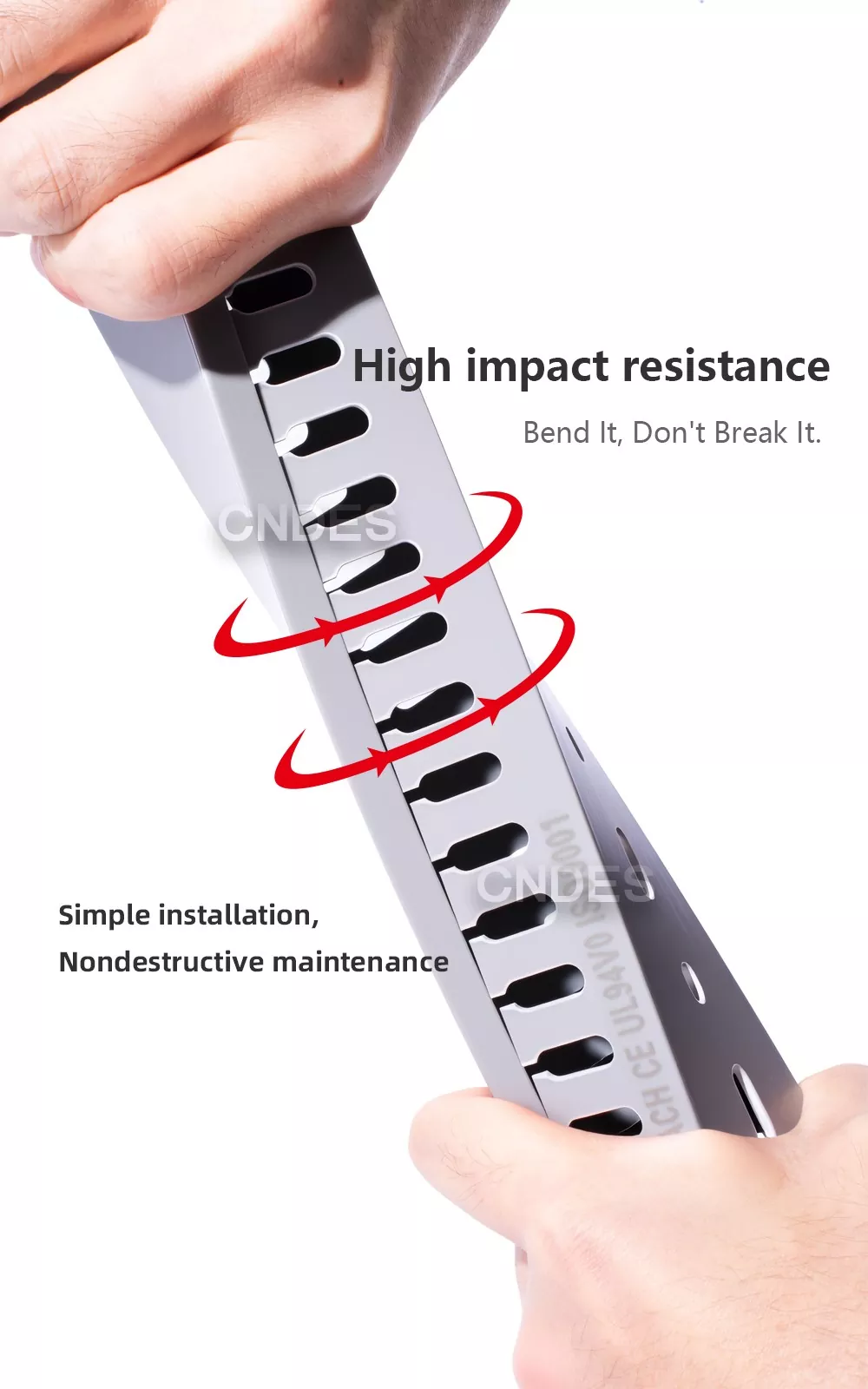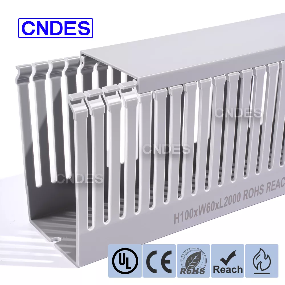 Subtilitas Slot- Subtilitas Grooving - Qualitas 100×60 PVC Duct Nam Electricae Tabulae uniformiter sulcus designant, permittens rudentes puriter ab aliquo loco exire; consuetudo foramen exemplaria praesto sunt ut optio..
