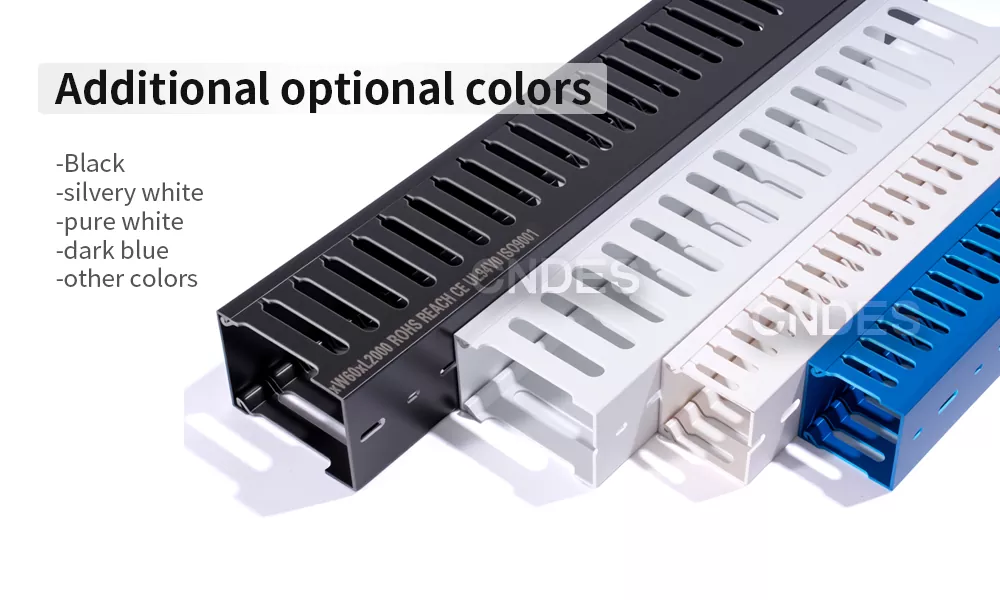 Qualitas 100mm Altitudo Patefacio Slot PVC Clausura Wiring Duct fabricatur ex UL94 V-0 materia flammea PVC retardans, quae semel fons flamma per se exstinguens tollitur, efficaciter retardans propagationem ignis et altiorem salutem electricam augens. Praeclara eius perficiendi insulatio adiuvat ne lacus current et periculum breve circuit, operandi stabilis operandi in clausuris electricis et tabulas moderandi.
