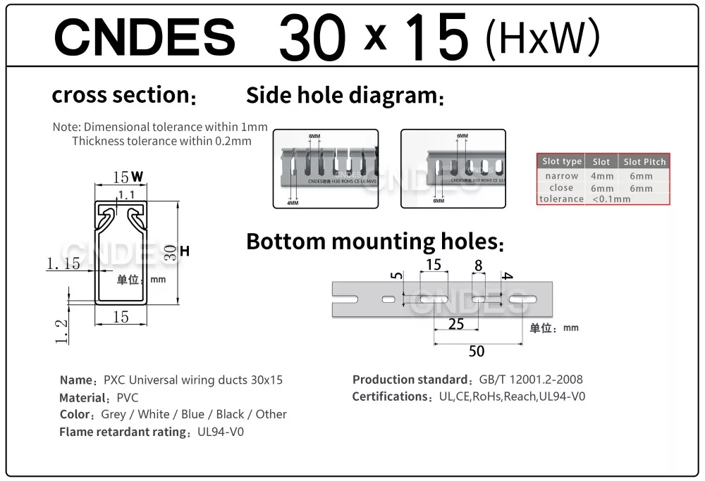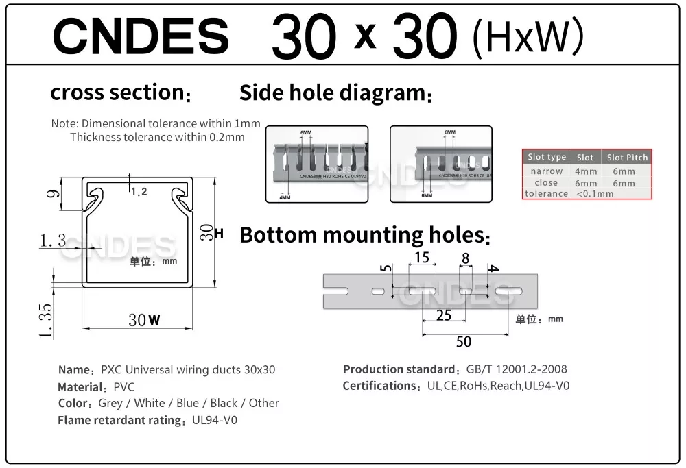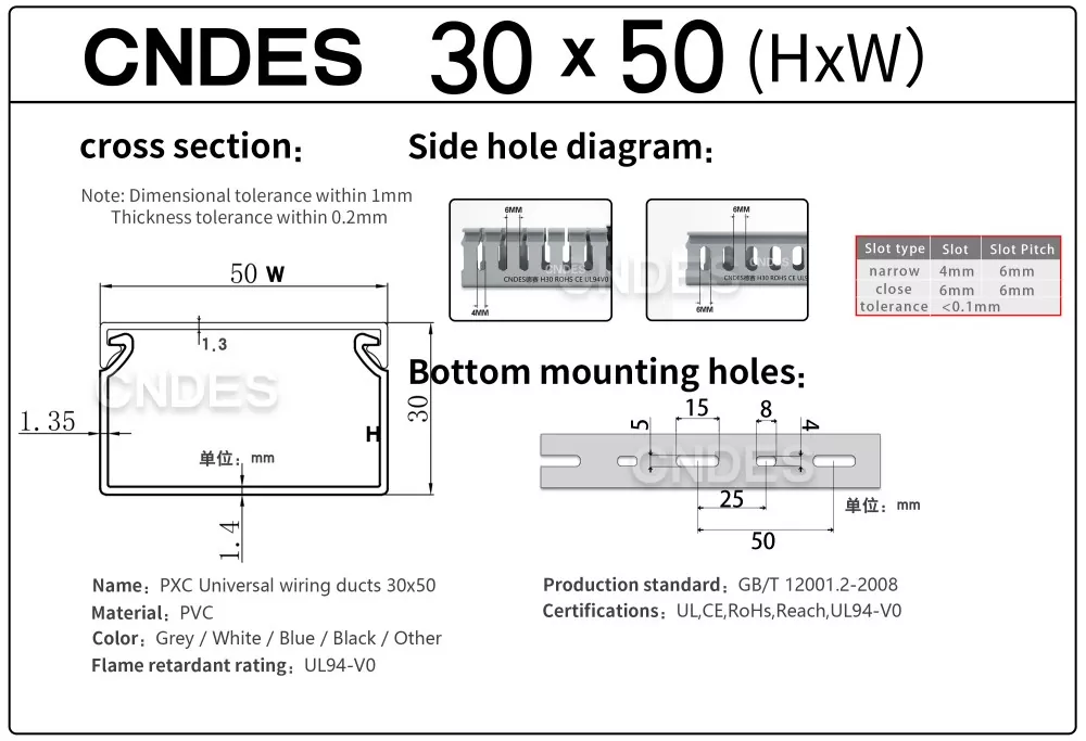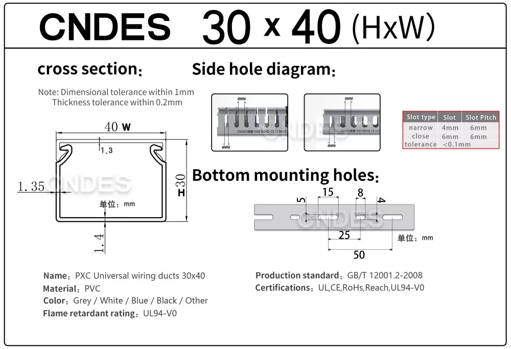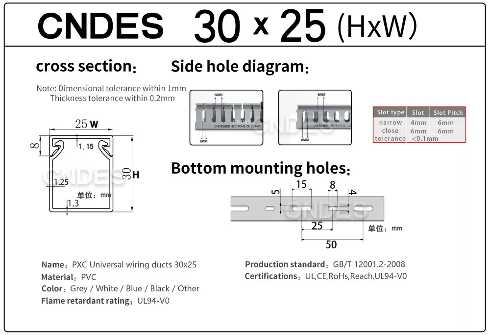 Mos 30mm Altitudo Slotted PVC Cable Management Ductus a CNDES ordinatur ad efficiens, pacta, et tutus funem in variis fundis industrialibus, commercialibus, et residentialibus fundis. Specimen applicationis cum angustiis strictis, hic ductus efficit ut wiring constituatur, muniatur, et facile adeatur.