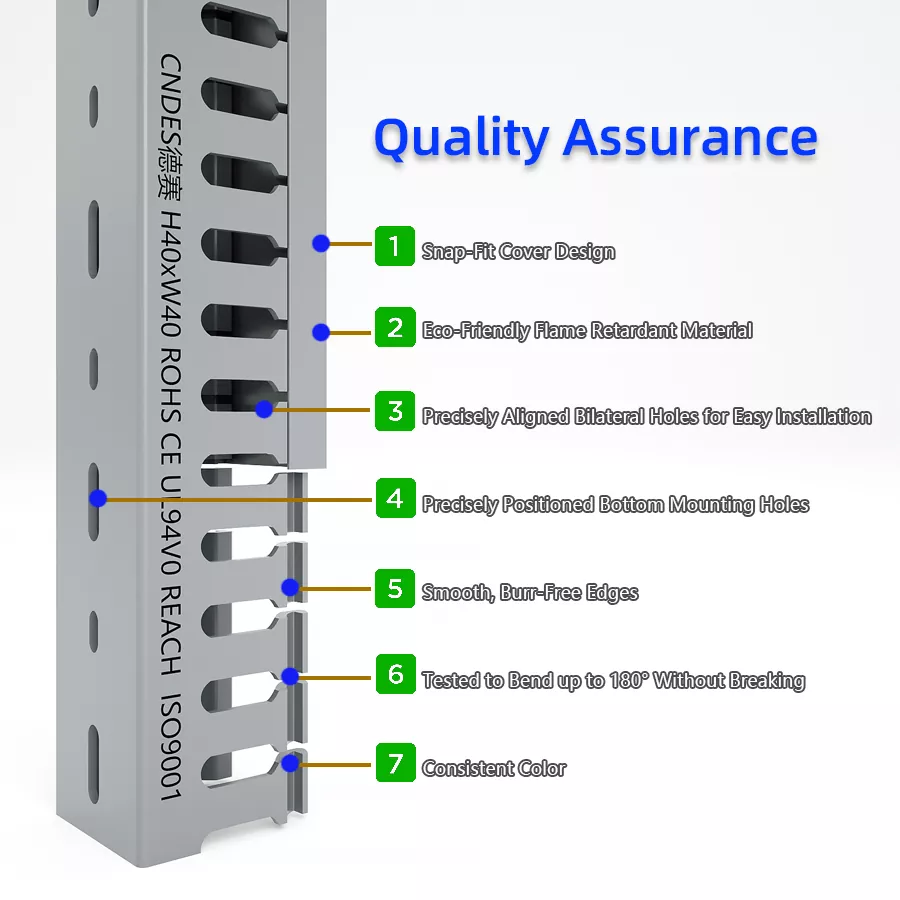 Omnis 40×40 PVC Wiring Duct cum Opere est praecisio-machina pro certa operatione. Snapis operculum serenat secure tamen facile aperitur, cum opus est. Per morem nostrum format singulas partes quadratae figurae perfecte servatae, nullae opercula prava aut inaequales bases. Omnia foramina subtiliter sub 0,2 mm impugnantur, cum foraminibus imis sitas et latera decursibus mundis, institutionibus professionalibus varius. Ad ultimum, ductus nostri resistunt ictum, plenum 360° anfractus sine crepitu sustinere, et recurrere ad figuram post flexuram — ita spectant et perficiuntur sicut novi, quotannis.