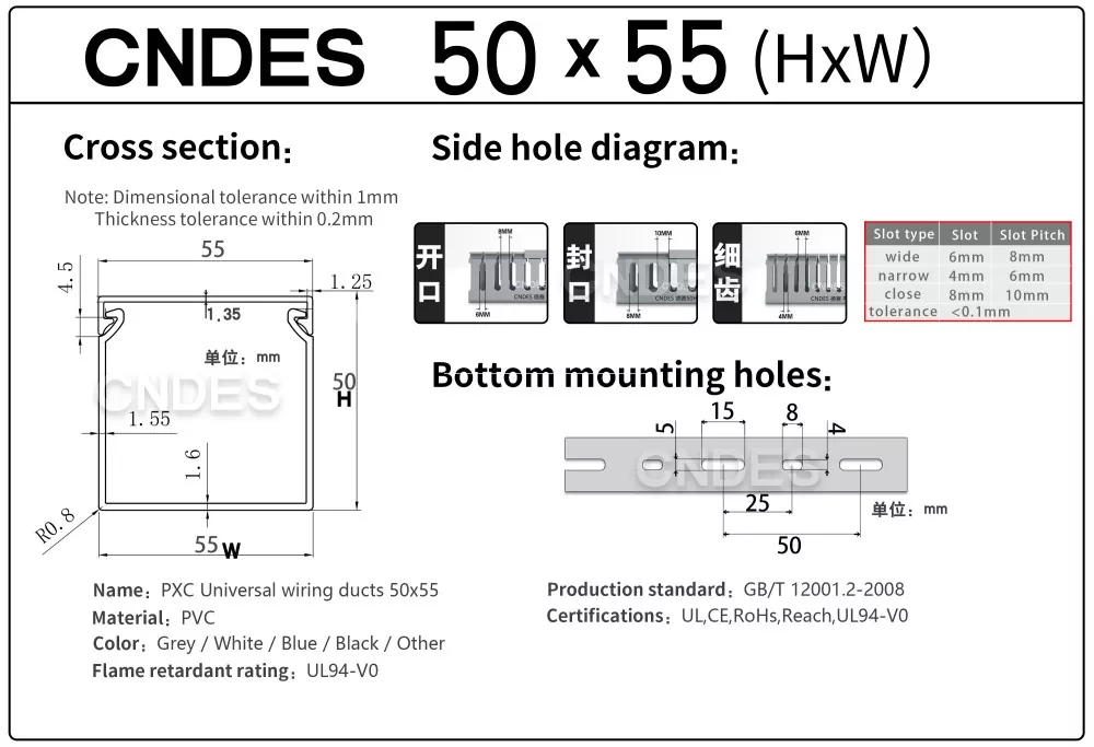 CNDES fabrica et elit specialiter ad praebendas Slotted PVC Panel Wiring Duct. Hic inseremus nostrum 50mm altum truncientem wiring, etiam sequentes specificationes: 50* 20, 50* 25, 50* 30, 50* 35, 50* 40, 50* 45, 50* 50, 50* 55, 50* 60, 50* 80,50*100.