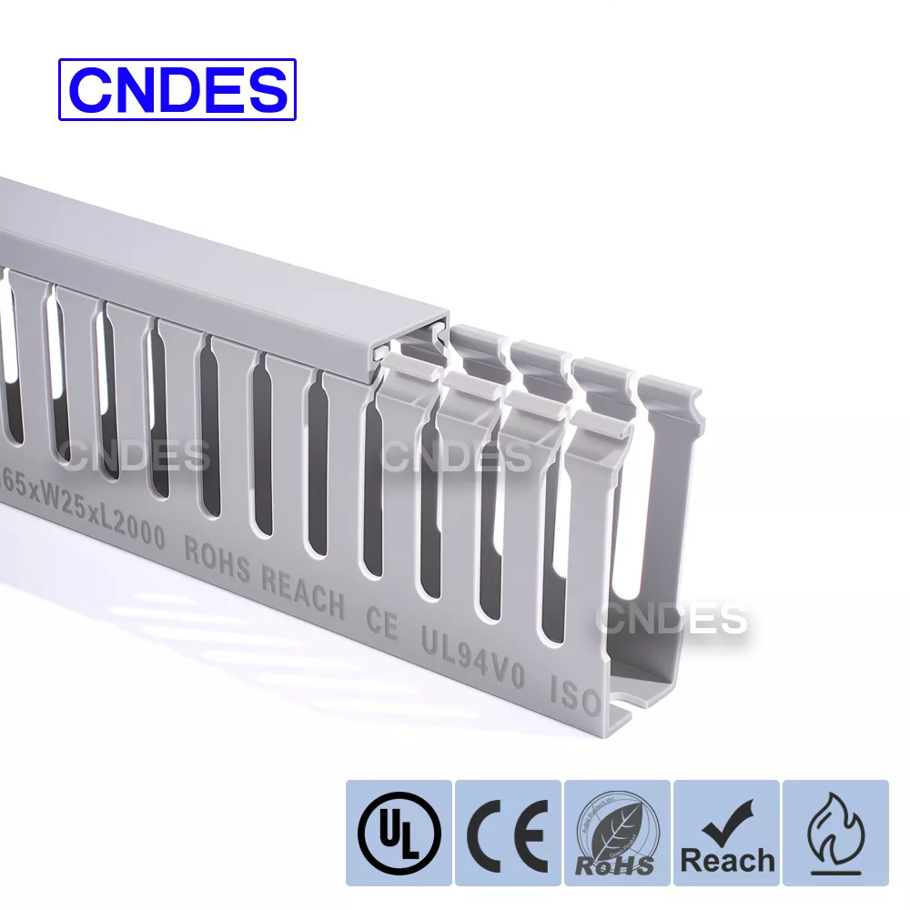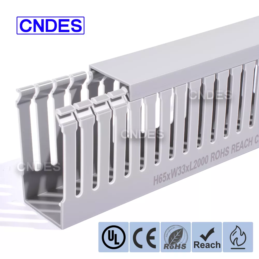 Qualitas 65mm Altitudo Slotted PVC Industrialis Wiring Duct perfecte apta est ad normas wiring layouts in usu tabularum industrialium vel clausuras.