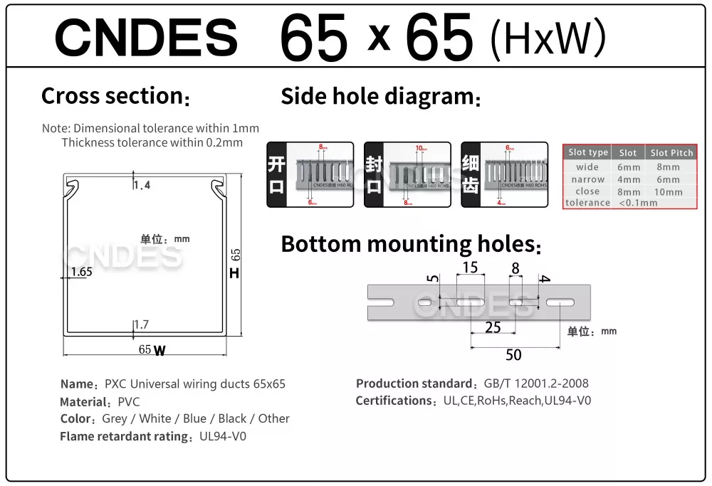 Ut opificem professionalem, te velimus tibi praebere CNDES slotted 65×65 PVC Cable Raceway.