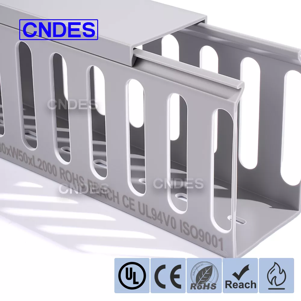 CNDES fabrica professionalis funis PVC slotted fercula in Sinis sita est. Hic inducemus nostrum 80×50 Slotted PVC Panel Cable Organizer, ubi 80*50mm repositorium fune cum altitudine 80mm et latitudine 50mm repraesentat.