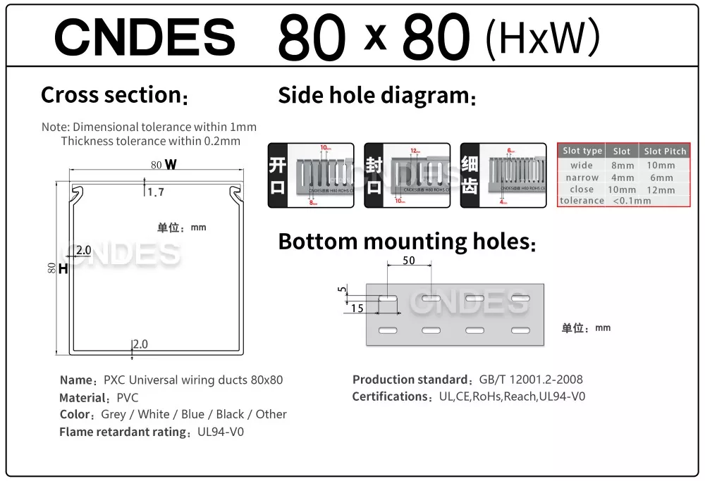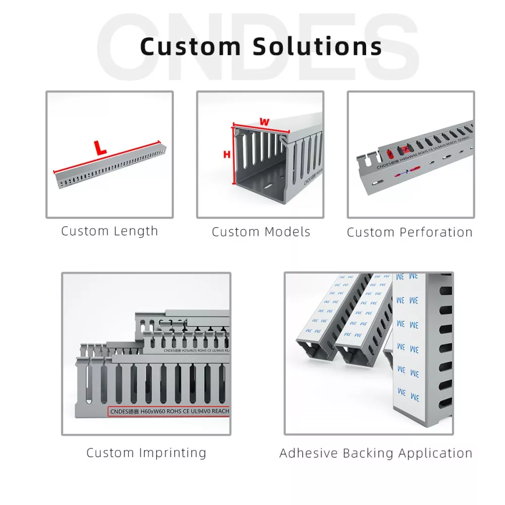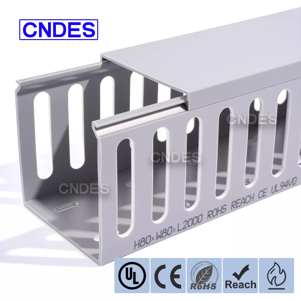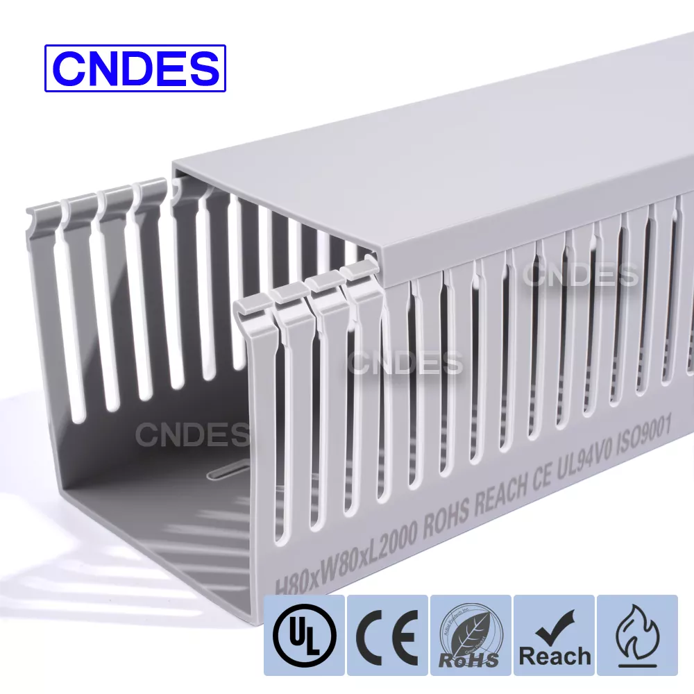 Cum emblematum vexillum accommodare phaleras iunctiones implicatas desinunt, CNDES Customized 80×80 Slotted PVC Switchboard Wiring Duct is your good choice. Cum magno interno spatio 80mm 80mm*, speciatim destinatur ad missiones summos postulantes sicut cabling narum spinarum, instrumenti industrialis botri potentiae, et in magna potestate repositoria centralised wiring. Magnum funem facile accommodat ac ordinat, valefaciens clutem et congestum semel.
