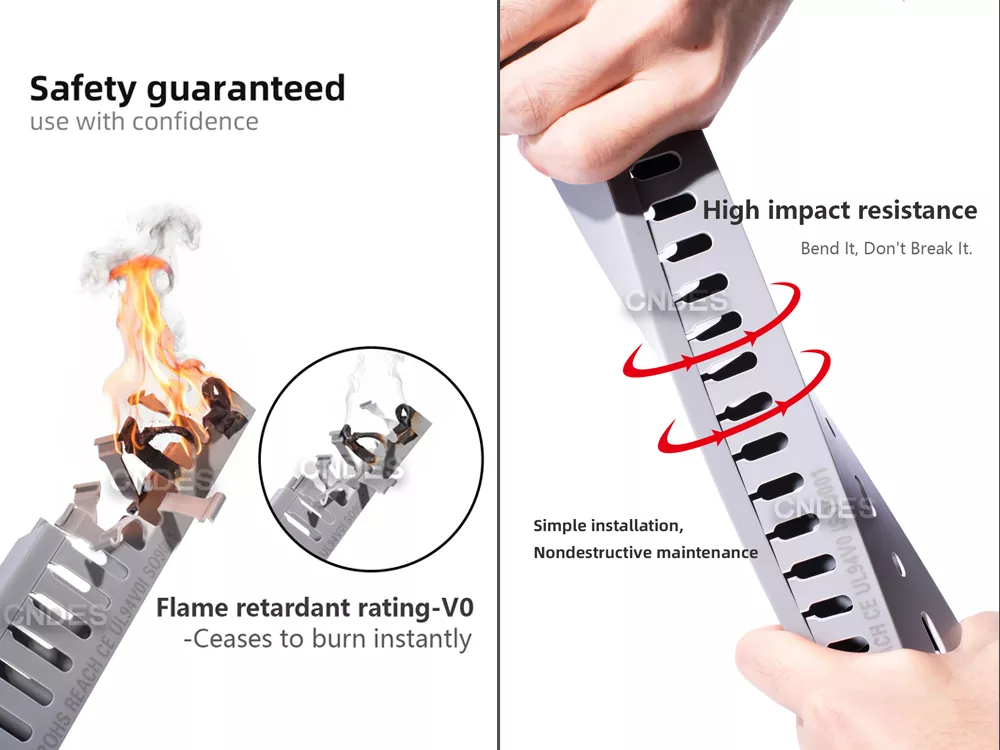 2. Industrialis-Gradus Fortitudo, tuta et certa: Qualitas 80×80 Slotted PVC Switchboard Wiring Duct factus est ex materia flammea retardantis PVC (UL94-V0), faciens eam robustam, durabilem, ictum repugnantem, et cum excellenti onere sustinentis facultatem. Praesidium mansurum praebet retinacula etiam in ambitus vibrationis.